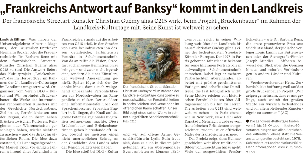 Presse Donau-Zeitung vom 06.10.2025 Presseartikel zum Projekt Donau-Zeitung vom 30.08.2025 Donau-Zeitung vom 03.09.2025